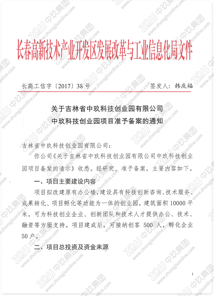 创业园建成后,将为创客、科技创业团队、科技型创新创业企业、科技创业人才等提供开放、融合、共赢的搭建服务平台,同时将打造成区域内有影响力的中小微企业、校企合作及各级各类创新创业孵化基地。为促进创业园更好发展,长春中玖投资有限公司投入2000万元,作为高新技术企业和科技项目的领投资金。